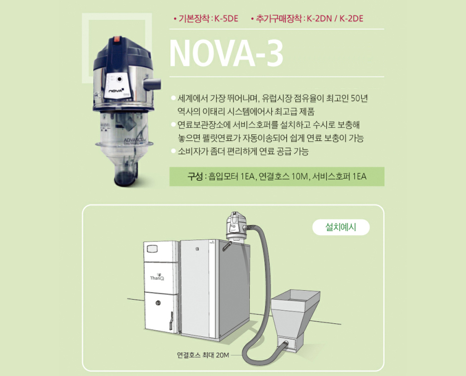 - - 세계최고의 연료자동이송기 기본 장착 - 손쉬운 연료 공급(유럽시장 점유율 최고인 이태리 시스템에어사의 최고급 제품 NOVA-3)